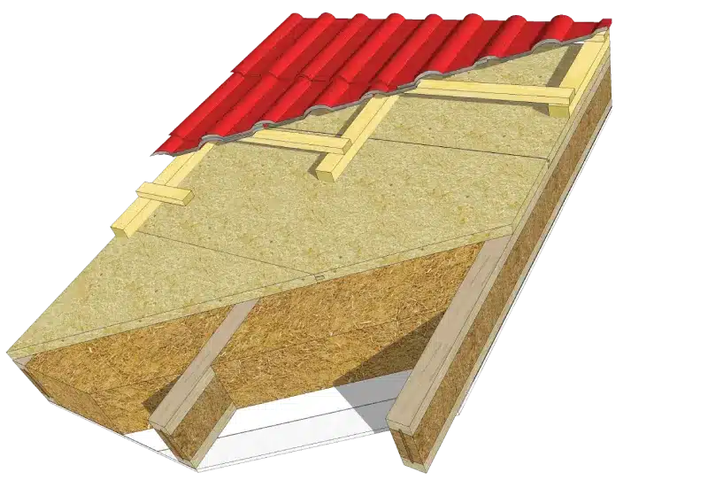 - Krokwie: STEICOJoist lub KVH 60x240mm+izolacja termiczna i akustyczna STEICOflex – 240mm